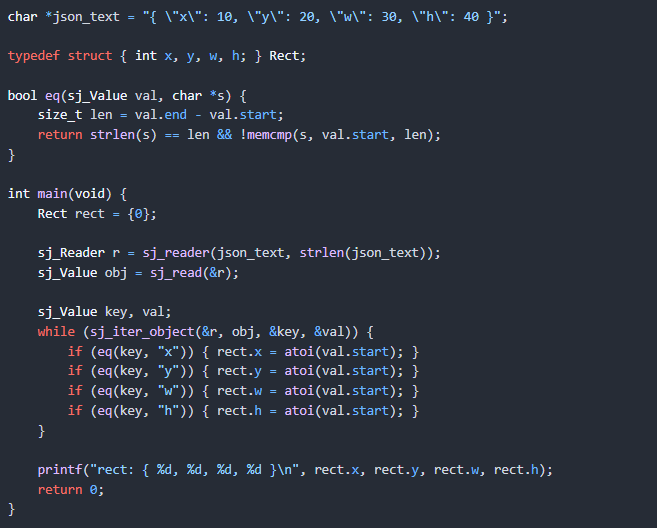 sj.h,只有 150 行代码的 json 解析库,符合 c99 规范,极致轻量。