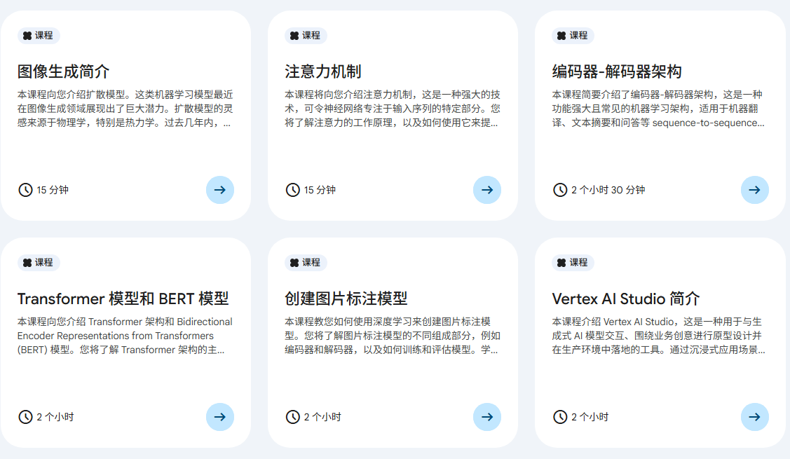 进阶:“面向开发者的生成式 AI”学习路线,谷歌推出的免费学习路线:“生成式 AI”学习路线侧重于技术领域,专为应用开发者、机器学习工程师和数据科学家量身打造。