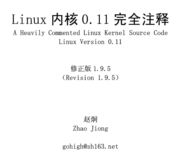 《Linux 内核 0.11 完全注释》,一本老书,对 Linux 早期操作系统内核(v0.11)全部代码文件进行了详细全面的注释和说明,旨在使读者能够在尽量短的时间内对 Linux 的工作机理获得全面而深刻的理解,为进一步学习和研究Linux 系统打下坚实的基础。