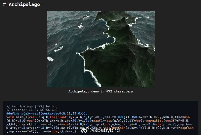 想象一下:用不到一条推文的字数,生成会发光的山脉、跳舞的小人、飘浮的岛屿。