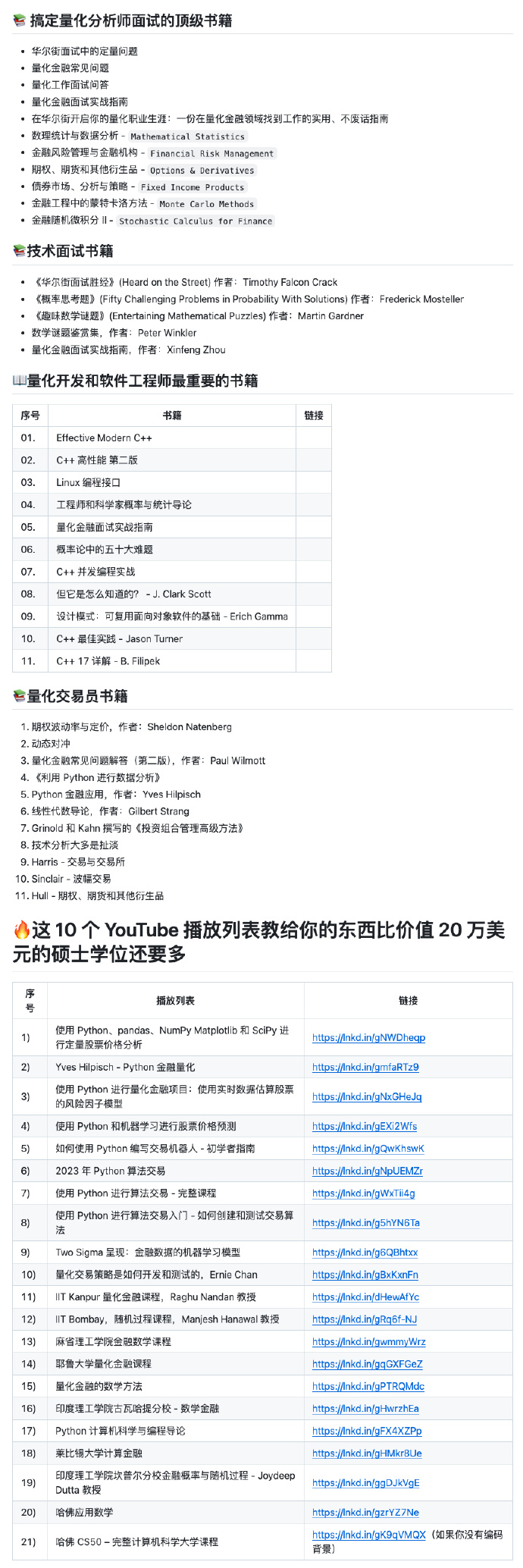 涵盖了从数学基础、随机微积分、编程语言到算法交易的核心知识点,并按面试要求进行了分类。
