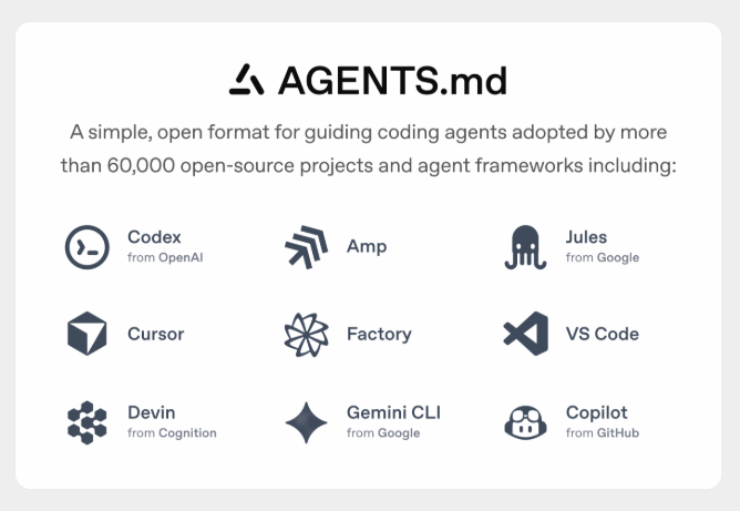 AGENTS.md,这个开源项目,旨在为 AI 编程智能体提供一份专属的“操作手册”。